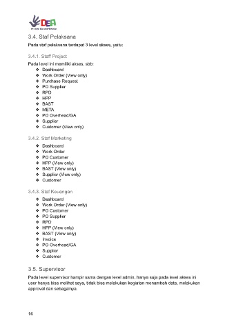 Pada staf pelaksana terdapat 3 level akses, yaitu: