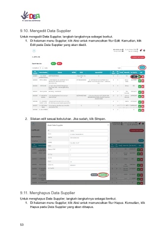 1. Di halaman menu Supplier, klik Aksi untuk memunculkan fitur Edit. Kemudian, klik