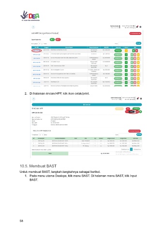 2. Di halaman rincian HPP, klik ikon cetak/print. 10.5. Membuat BAST Untuk membuat BAST, langkah-langkahnya sebagai berikut. 1. Pada menu utama Dealopa, klik menu BAST. Di halaman menu BAST, klik Input BAST. 58
